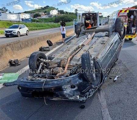 De acordo com informações da concessionária responsável pelo trecho, um Chevrolet Classic seguia pela rodovia quando o motorista perdeu o controle da direção, bateu contra a barreira de proteção e, em seguida, o veículo capotou, parando sobre a faixa 1 da pista.