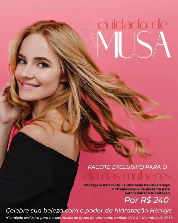 A proposta combina massagem relaxante com hidratação capilar da linha Henvys, focada na reposição de nutrientes e no fortalecimento dos fios. Como presente adicional, as clientes que aderirem ao pacote no período promocional receberão ozonioterapia capilar, técnica que potencializa a absorção dos ativos e contribui para mais brilho e vitalidade aos cabelos.