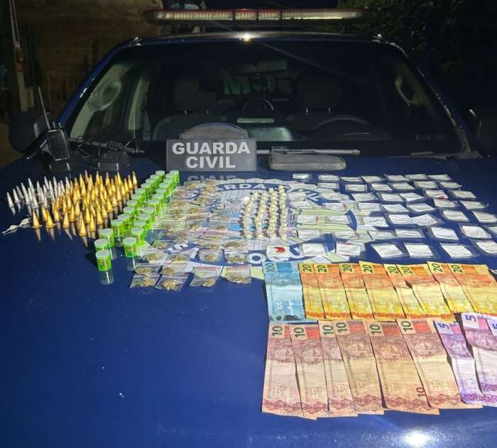 Durante a averiguação, os agentes visualizaram dois indivíduos sentados sobre uma pilha de tijolos. Ao perceberem a aproximação das equipes, os suspeitos tentaram fugir, mas foram detidos pelos guardas municipais.