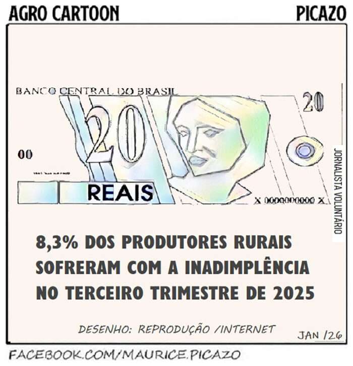 A Serasa Experian informou em seu site que a inadimplência no agro atingiu 8,3% da população rural no terceiro trimestre de 2025. As dívidas com instituições financeiras concentram a maior parte dos casos.