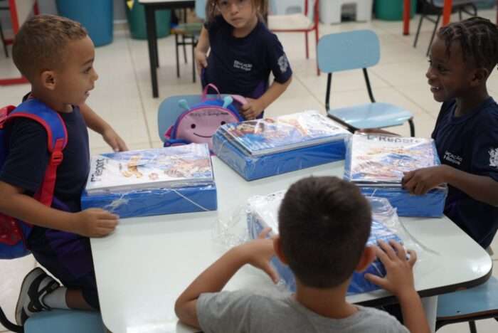 A entrega dos kits ocorre ao longo da primeira quinzena de fevereiro e contempla materiais elaborados de acordo com as necessidades de cada etapa de ensino, com conjuntos específicos para cada faixa escolar.