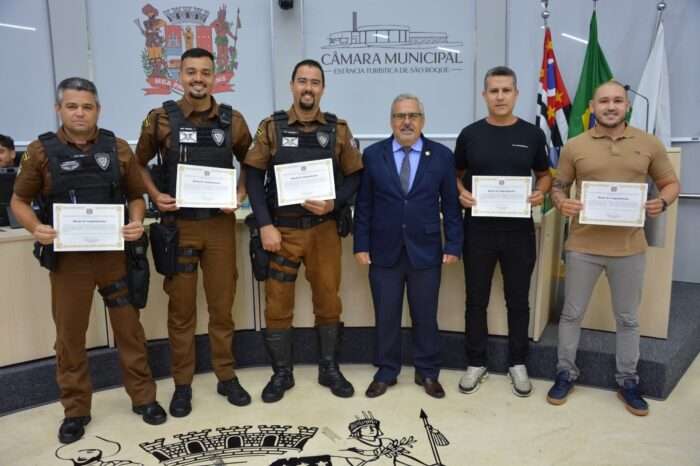 Durante a 43ª Sessão Ordinária da Câmara Municipal, realizada na manhã de terça-feira, dia 9, o vereador destacou a importância das ações promovidas pela Divisão de Trânsito e entregou a Moção de Congratulações nº 376/2025 aos agentes de trânsito Silvio Sidnei de Camargo, Elton Tadeu Lima, Eduardo Antônio Gomes Martins, Hiago Henrique de Oliveira Rocha, Gabriel Duarte Evangelista e Macallysterr Sheldonn Melo do Sacramento.