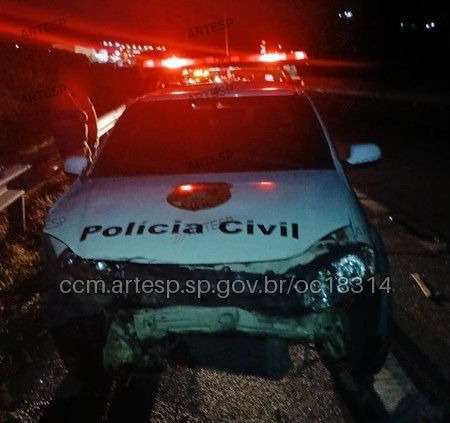 Uma viatura da Polícia Civil se envolveu em um acidente na noite deste domingo (22) na Rodovia Castello Branco (SP-280), na altura do km 49, no sentido Oeste, em Araçariguama (SP).